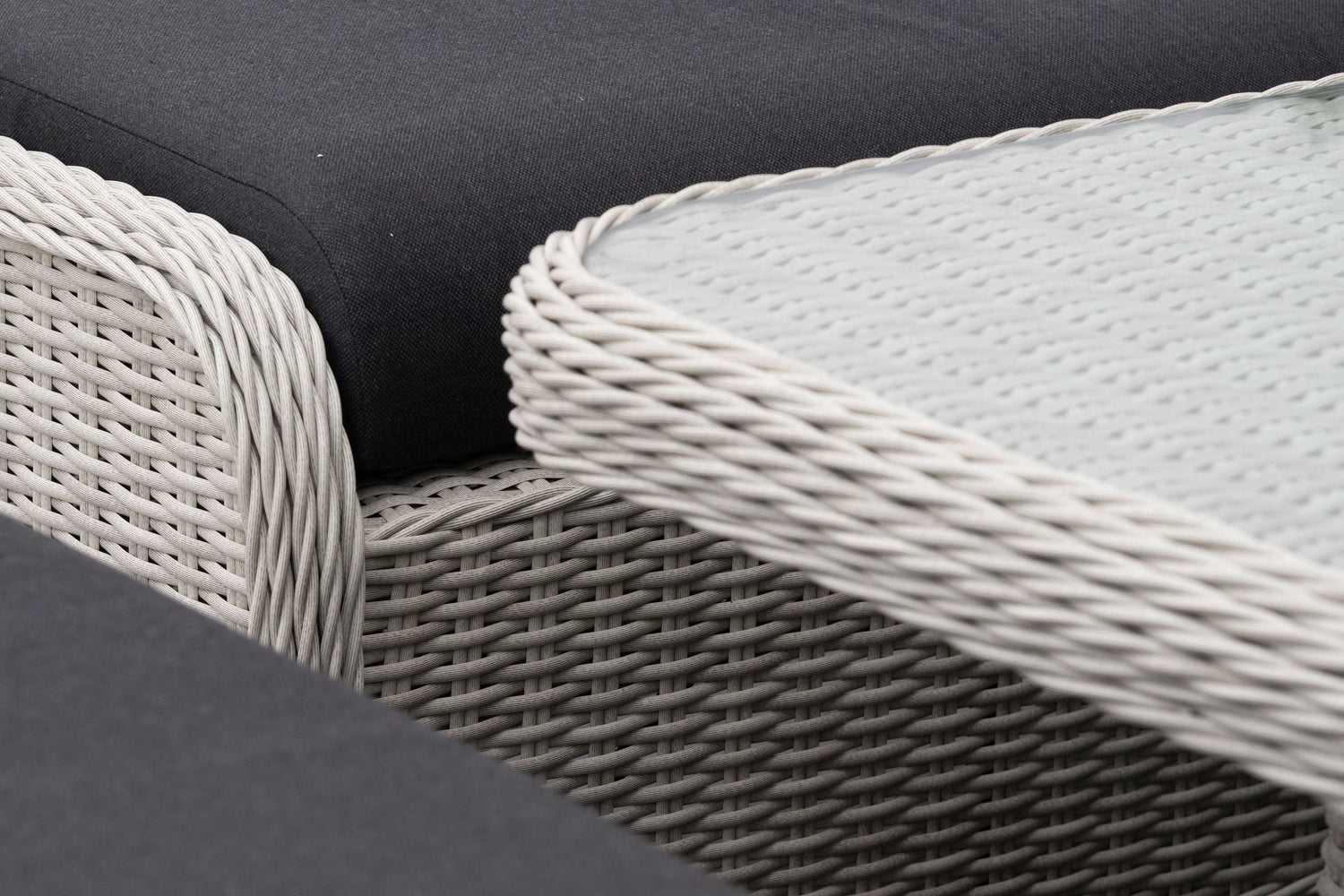 Designed with meticulous craftsmanship, the Avery Grande offers plush handcrafted cushions that provide exceptional comfort, while the oversized corner seating ensures ample space for you and your guests to relax or entertain. The set’s 28mm half-round weave combines durability with sophisticated style, creating an inviting outdoor retreat.