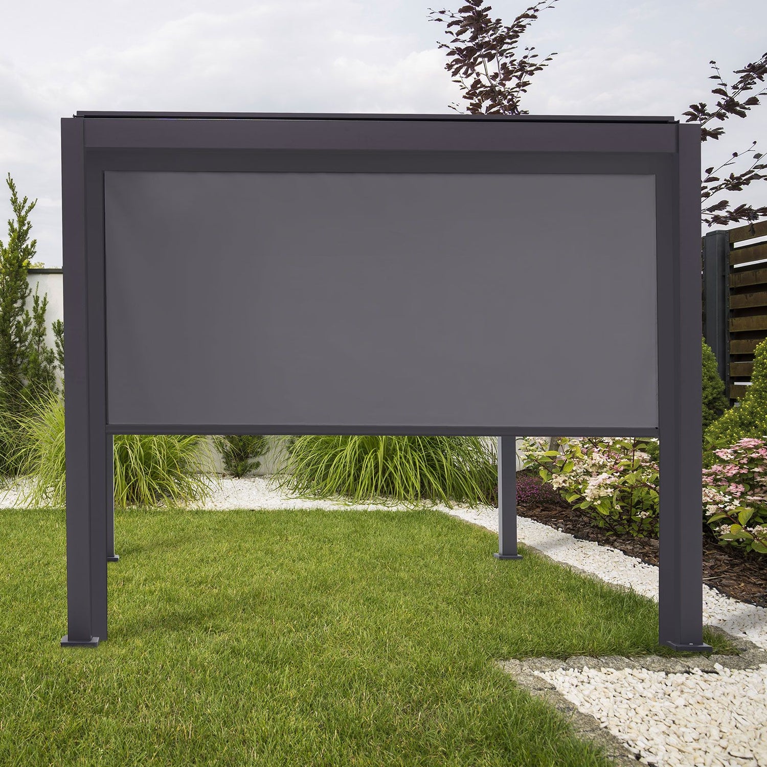 This screen effortlessly attaches to your 3m Titan pergola, offering a quick and easy solution for creating a private retreat, providing refreshing shade, or shielding you from the wind. It effectively transforms your outdoor space into a cozy and sheltered environment.