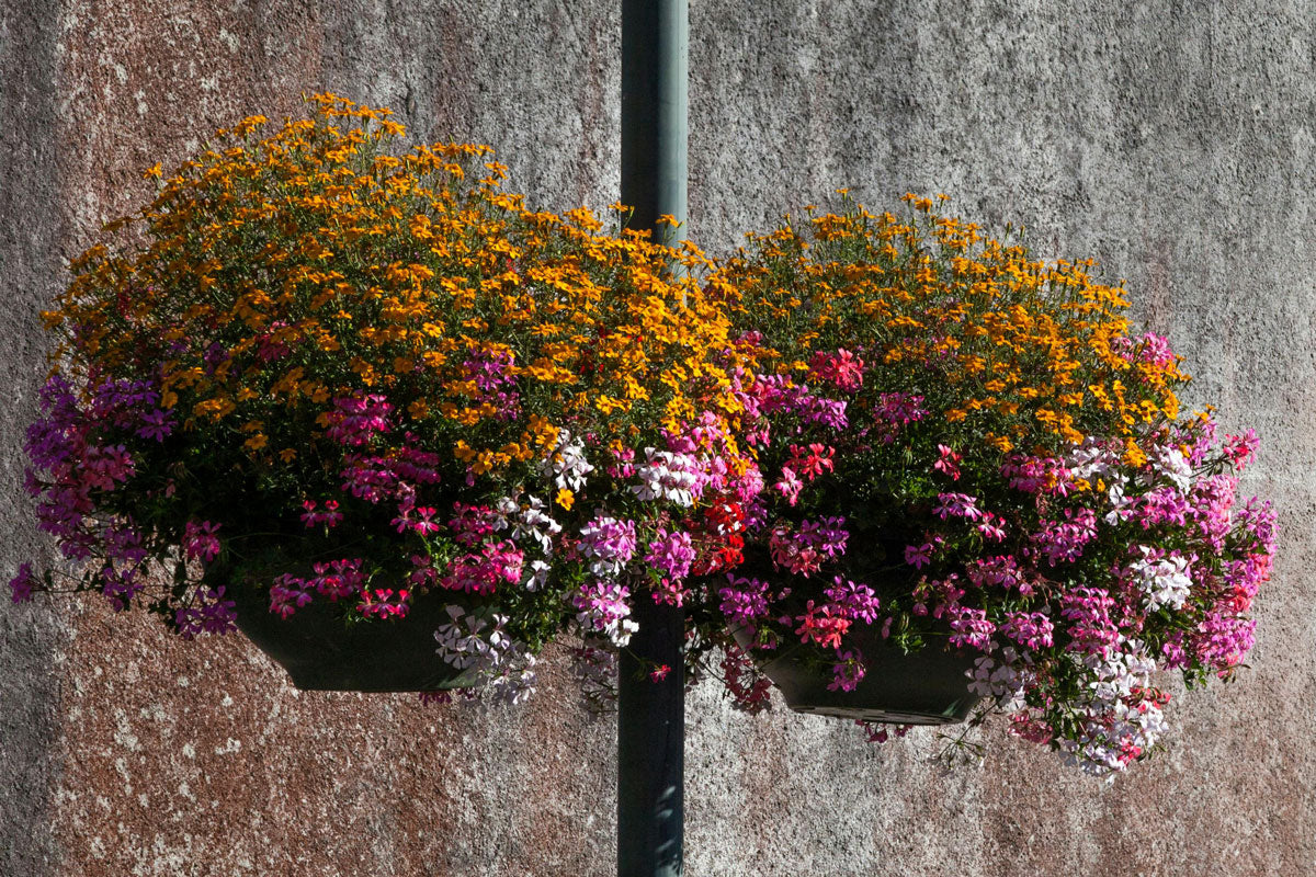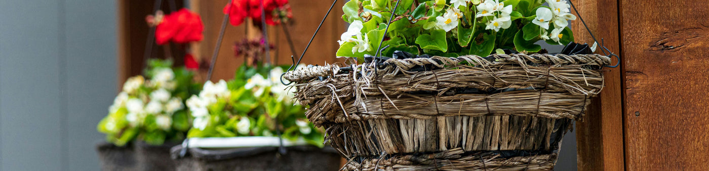 Hanging baskets are an extension of your garden, suspended from hooks or structures to add a burst of colour and greenery to your outdoor spaces. These baskets typically contain a mix of flowering plants and trailing foliage, creating a stunning display at eye level. They serve as versatile garden accents, suitable for balconies, porches, or anywhere with a bit of overhead space.